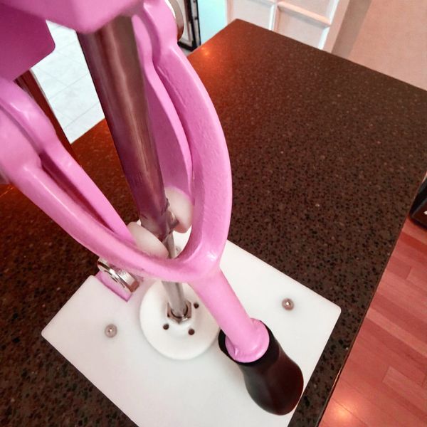 We utilize a one-piece 304 stainless steel rod, with a TIG welded stainless steel center pivot rod, in the construction of the Ultimate Manual Citrus Smasher.