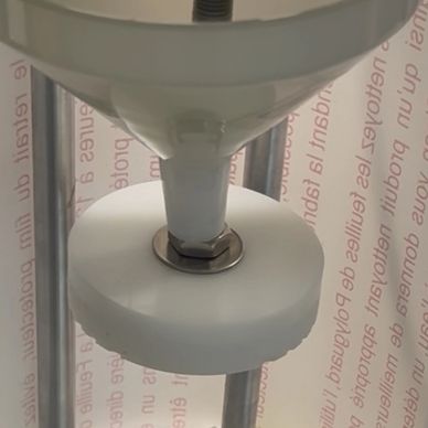 We utilize Acetal Copolymer, an FDA / NSF compliant material in the construction of our smasher heads. This is coupled with a stainless steel jam nut and washer to ensure it does not loosen.