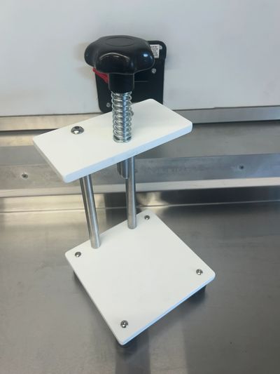Just place the deli cup underneath the top plate, and against the rear support rods and slam the knob. BOOM, there‘s a nice 1/2 inch hole (will fit Boba straws) in the deli cup.